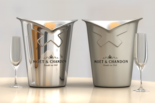 Seau jeroboam Vranken, poli, intéreur doré, plaque en laiton appliqué avec logo, bord roulé, VRANKEN